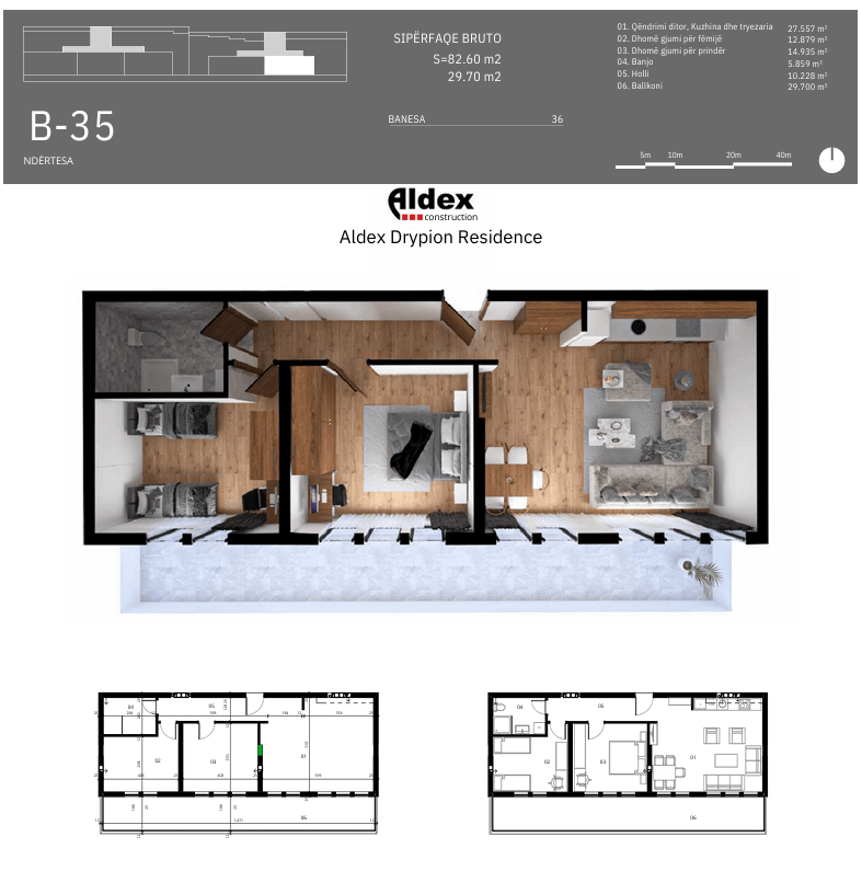 01. Qëndrimi ditor, Kuzhina dhe tryezaria - 27.557 m²