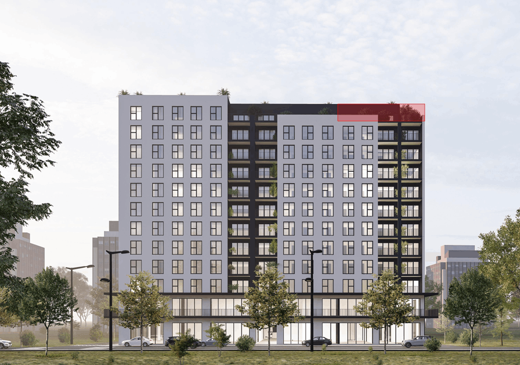 Karakteristikë e Penthouse është hapësira e shfrytëzueshme e qëndrimit ditor me kuzhinë në anën tjeter ku ka qasje në terasë nga Jugu, ndërsa njëra nga tri dhomat e gjumit është master room pra posedon garderobë dhe banjo si dhe qasje në ballkonin tjeter me orientim lindje.